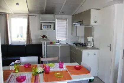 Mobil-home 30 m², équipé de 3 chambres et 1 salle de bain, tout équipé